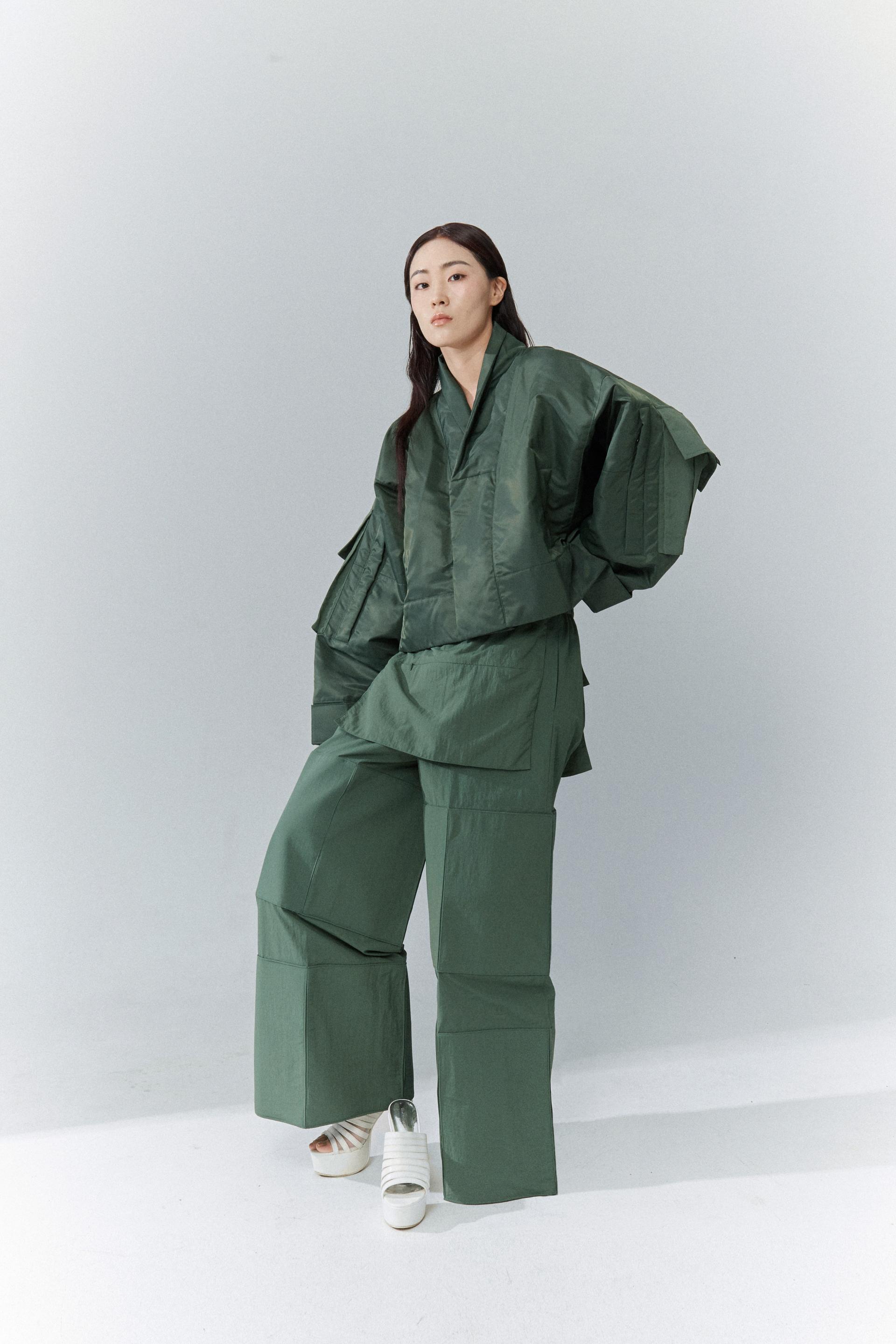 All-season wide-legged pants with a patterned construction that folds up for easy storage