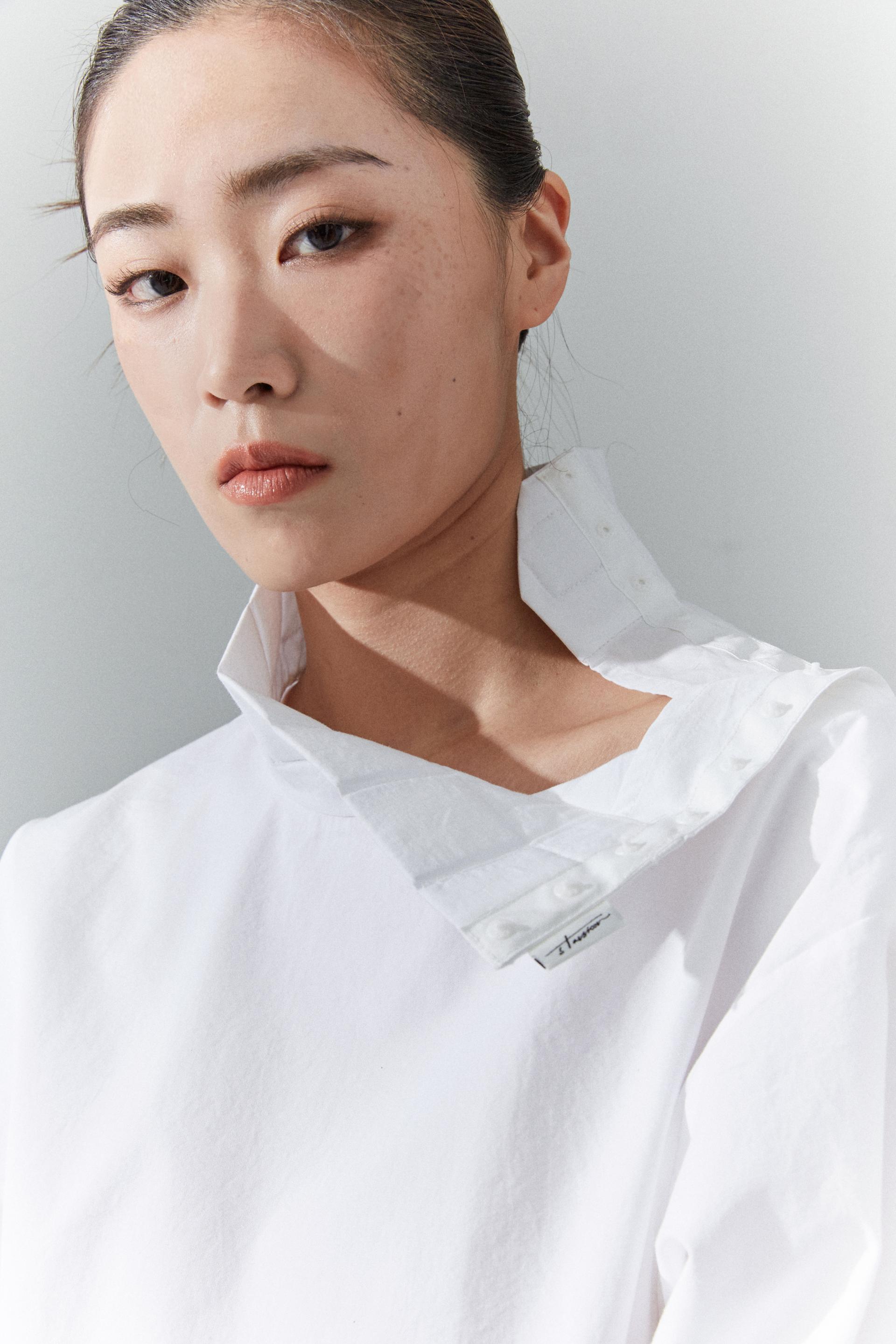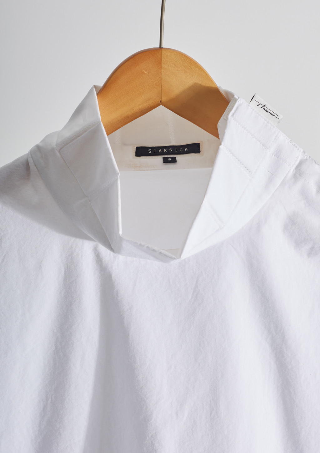 Plastic snaps from side neck to shoulders for versatile styling when open