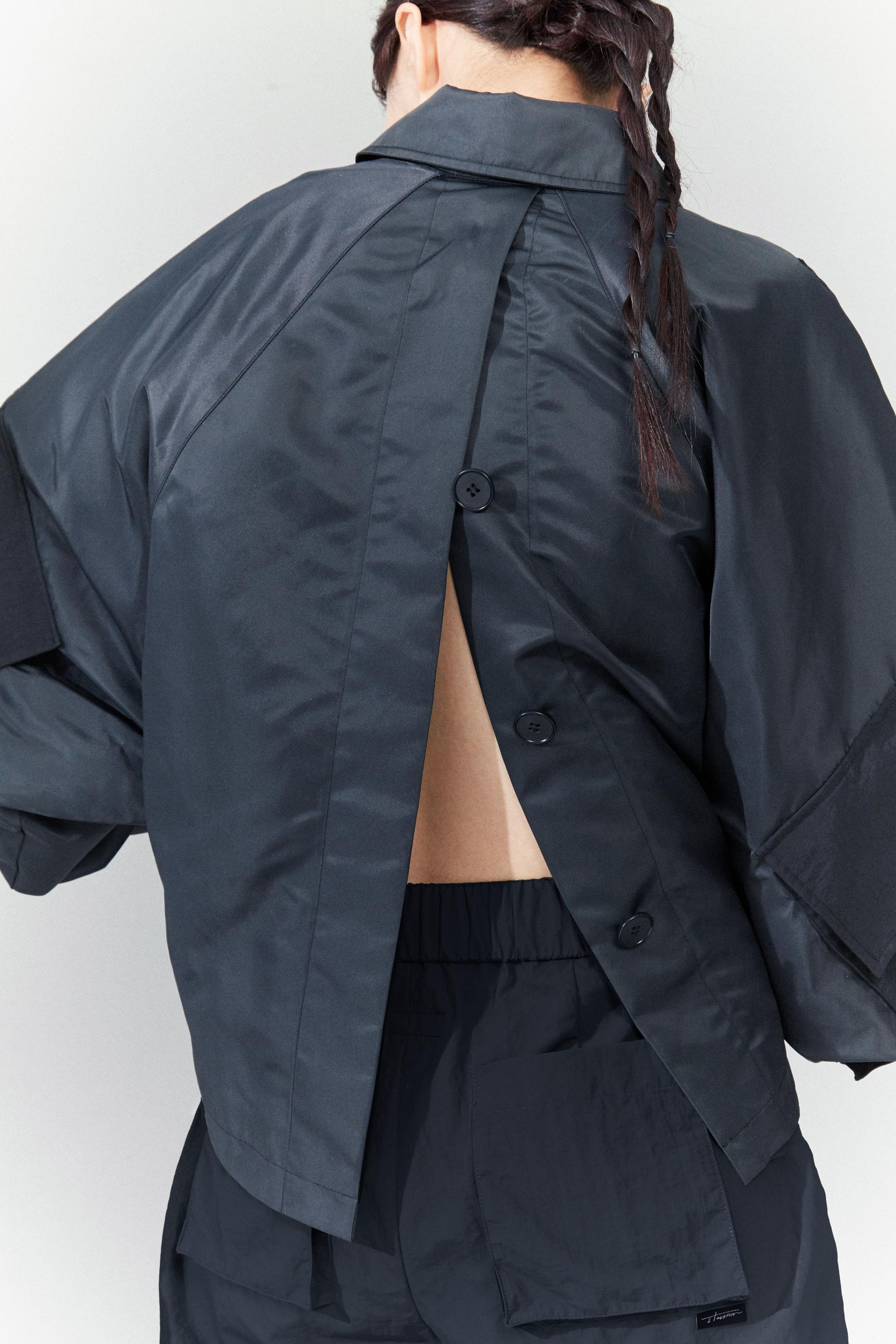 Cropped bomber jacket inspired by a traditional Korean outfit, Hanbok Jeogori