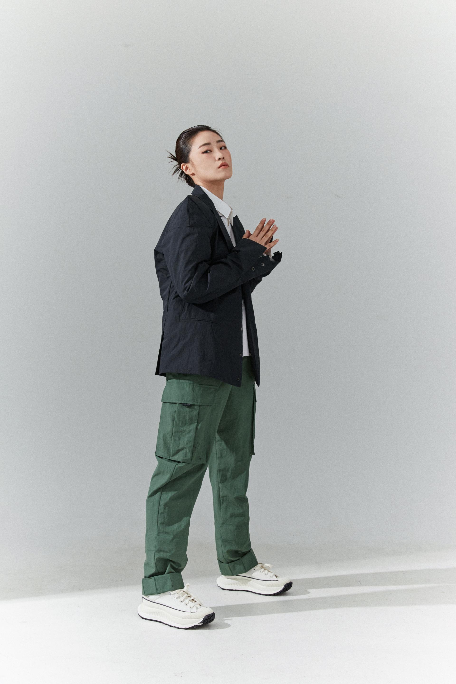 Made of thick, unevenly textured nylon fabric for spring, fall, and early winter wear